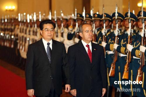 圖:胡錦濤歡迎墨西哥總統(tǒng)卡爾德龍訪華