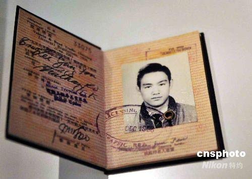 圖為當(dāng)年李小龍的香港駕駛執(zhí)照(復(fù)制品)。中新社發(fā) 譚達(dá)明 攝