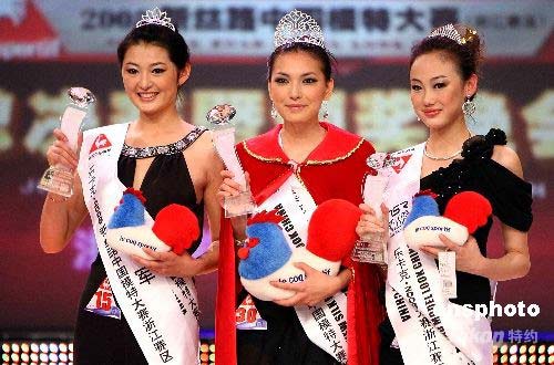 7月19日晚,2008新絲路模特大賽浙江賽區(qū)總決賽在浙江杭州舉行。15名女選手經(jīng)過激烈角逐,最后30號(hào)選手章建麗(中)、15號(hào)選手由倫娜(左)、12號(hào)選手李建楠(右)分別奪得冠亞季軍。她們?nèi)藢⒋碚憬瓍⒓尤珖倹Q賽。中新社發(fā) 袁云 攝