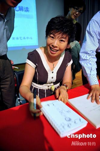 圖:于丹為舊金山灣區(qū)的華人華僑簽名留念
