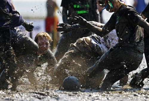 7月27日,德國北部海邊小鎮(zhèn)Brunsbuettel的泥灘上進(jìn)行一場泥地足球賽。男女“球員”混合在一起,泥地中盡情撒野。該地海水退潮后就會剩下一片泥灘,人們常在這里踢足球。