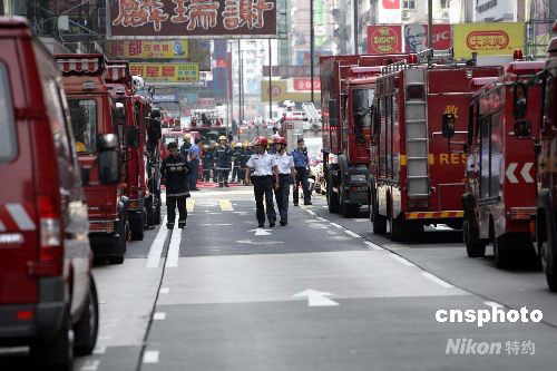 香港消防處派出逾二百名消防員、四十輛消防車救火。中新社發(fā) 洪少葵 攝