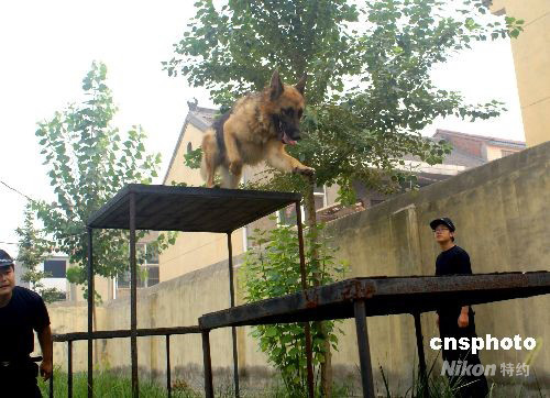 河南省濟源市刑警支隊舉行“警犬反恐演練”活動。警犬在刑警的帶領(lǐng)下進行了穿越障礙、追捕逃犯、嗅覺鑒別等一系列反恐演練科目,大大強化了警犬進行反恐實戰(zhàn)的能力。中新社發(fā) 平白 攝