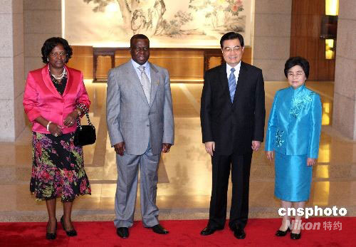胡錦濤歡迎幾內(nèi)亞比紹總統(tǒng)維埃拉夫婦出席殘奧會閉幕式