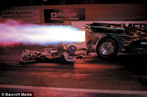特技人阿托恩則向人們展示了他是如何在一輛1.4萬馬力、時(shí)速高達(dá)236英里的賽車后,靠抓住賽車尾部被拖拽了將近400米的勇氣。