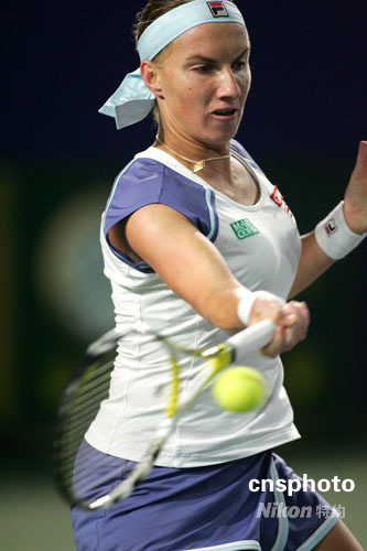 4號(hào)種子俄羅斯姑娘庫(kù)茲涅佐娃對(duì)陣中國(guó)金花鄭潔,最終庫(kù)茲涅佐娃以7-6/7-5戰(zhàn)勝鄭潔挺進(jìn)決賽。中新社發(fā) 富田 攝