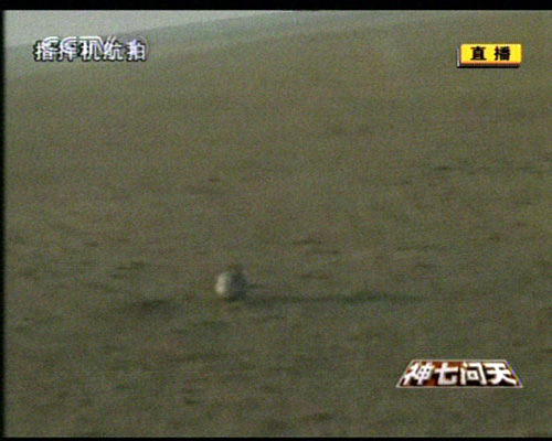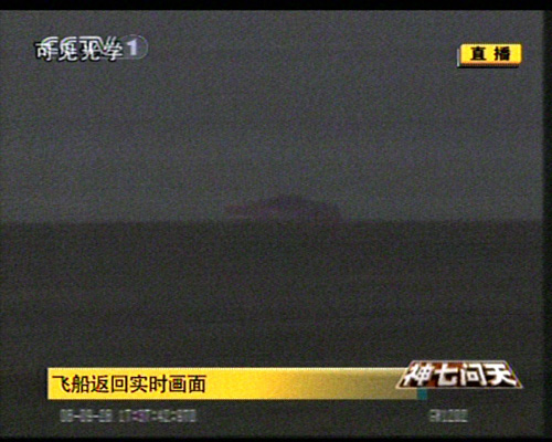 直升機(jī)拍到返回艙畫面。(電視截圖)