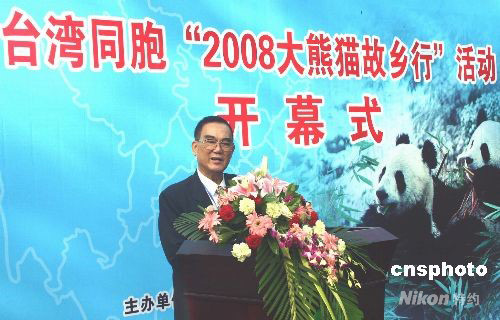 10月8日,臺灣同胞“2008大熊貓故鄉(xiāng)行”活動在成都大熊貓繁育基地啟動,臺灣知名人士林仙保先生一行50余人專程從臺灣到四川參加。這次活動將進一步加強四川省與臺灣南部地區(qū)的交流與合作。圖為林仙保先生在開幕式上致辭。中新社發(fā) 黃永莉 攝