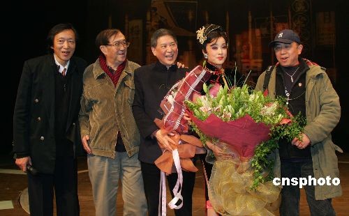 該組圖片攝于2005年1月6日晚,由劉曉慶領(lǐng)銜主演的大型歌舞話劇《金大班的最后一夜》在上海隆重上演。這部大型歌舞話劇是根據(jù)白先勇先生的作品改編而成的,著名導(dǎo)演謝晉到場祝賀并向慈善基金會捐款。中新社發(fā) 潘索菲 攝