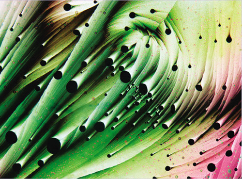 間苯二酚、亞甲基藍(lán)、硫磺的結(jié)晶混合物,約翰·哈特攝,放大13倍。拍攝地點:美國科羅拉多州伯爾德。所用技術(shù):透射偏振光。