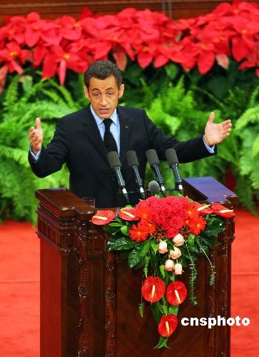 法國(guó)總統(tǒng)薩科齊在開幕式上發(fā)表講話。中新社發(fā) 廖文靜 攝