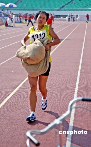 圖:農(nóng)運會賽場上運動員“忙運糧”