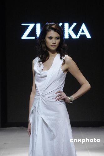 2008年10月31日,2009ZUKKA春夏時裝發(fā)布會在上海浦東鄂爾多斯國際大廈15Space創(chuàng)意園舉行。著名模特王文琴領銜走秀。ZUKKA整場發(fā)布會以“溫度”為主題,呼吁大家多關注我們人類共同的生存環(huán)境,關愛我們的地球。中新社發(fā) 董鴻景 攝
