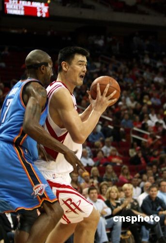 當(dāng)?shù)貢r(shí)間11月1日晚,美國(guó)NBA,休斯頓火箭在主場(chǎng)以89-77擊敗雷霆。姚明貢獻(xiàn)16分11個(gè)籃板。赴美治傷的劉翔出現(xiàn)在休斯頓火箭隊(duì)主場(chǎng),觀看老鄉(xiāng)姚明的比賽。中新社發(fā) 歐文 攝