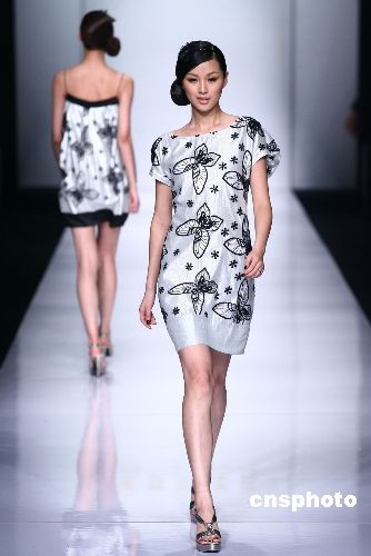 模特展示設(shè)計(jì)師作品。中新社發(fā) 睿瀛 攝