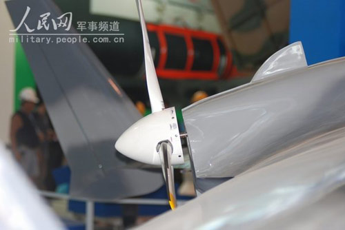CH-3型無人攻擊機(jī)采用螺旋槳發(fā)動(dòng)機(jī)。 人民網(wǎng)軍事記者 楊鐵虎 攝