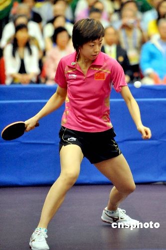 圖為奪得奧運女單金牌的張怡寧在香港表演球技。中新社發(fā) 鄧慶樂