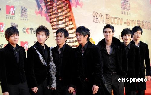 十一月十六日晚,第九屆CCTV-MTV音樂(lè)盛典在北京舉行,帥氣的Super Junior-M組合踏上紅地毯。中新社發(fā) 廖攀 攝