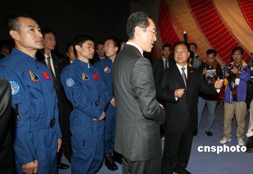 十二月六日,“中國(guó)首次太空漫步航天展”在香港科學(xué)館揭幕,神舟七號(hào)返回艙、航天服和航天員出艙后所展示的國(guó)旗等珍貴展品和圖片在展會(huì)上亮相。