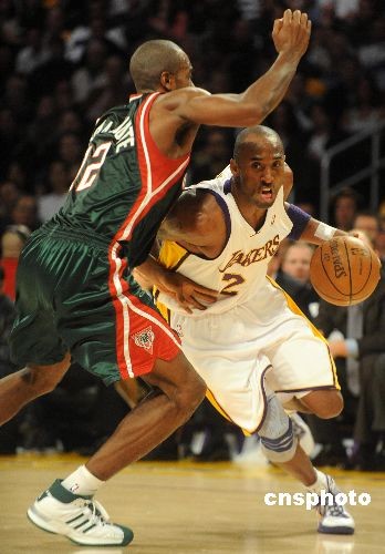 當(dāng)?shù)貢r間十二月七日晚,NBA洛杉磯湖人隊在主場以一百零五比九十二輕取雄鹿隊。其中湖人后衛(wèi)科比·布萊恩特上場三十一分鐘,奪得二十分。中新社發(fā) 張煒 攝