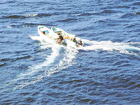 12月17日早上當(dāng)?shù)貢r(shí)間8時(shí)。亞丁灣。2艘白色小艇向“振華4號(hào)”整機(jī)運(yùn)輸船駛來,在賊艇距離“振華4號(hào)”大約4海里處,船長彭維源果斷拉響了全船警報(bào)!