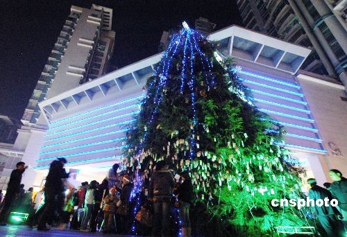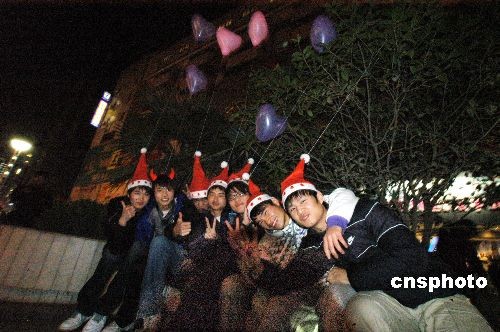 2008年12月24日晚,安徽合肥市不少市民走出家門(mén),在街頭歡樂(lè)度過(guò)平安夜。中新社發(fā) 莊道龍 攝