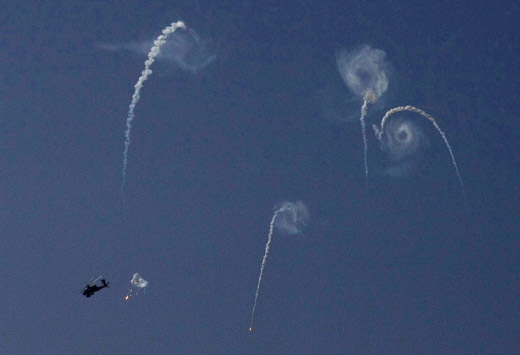 28日,以色列直升機在加沙地帶上空發(fā)射火箭。