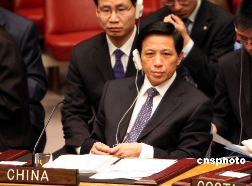 聯(lián)合國安理會1月6日就加沙局勢舉行緊急會議。中國常駐聯(lián)合國代表張業(yè)遂在會上發(fā)言,呼吁安理會盡快行動,通過一項決議,促成以巴立即停火。包括巴勒斯坦民族權(quán)力機(jī)構(gòu)主席阿巴斯、美國國務(wù)卿賴斯、英國外相米利班德,以及沙特、埃及、約旦、黎巴嫩、摩洛哥、卡塔爾、敘利亞等阿拉伯國家外長和安理會理事國常駐聯(lián)合國代表都出席會議。中新社發(fā) 李靜 攝