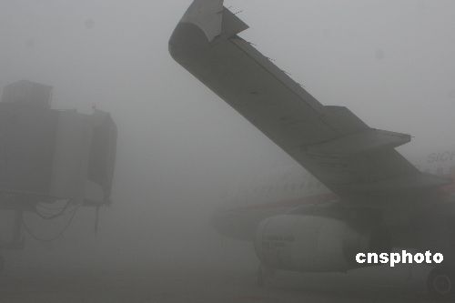 繼1月18日成都雙流國(guó)際機(jī)場(chǎng)遭受近年來(lái)最為嚴(yán)重的一場(chǎng)濃霧天氣襲擊后,19日,一場(chǎng)更為嚴(yán)重的濃霧再次襲擊雙流機(jī)場(chǎng)。這場(chǎng)濃霧發(fā)生在早上5:30左右,當(dāng)時(shí)能見(jiàn)度僅有10米左右,機(jī)場(chǎng)被迫關(guān)閉。中新社發(fā) 呂俊明 攝