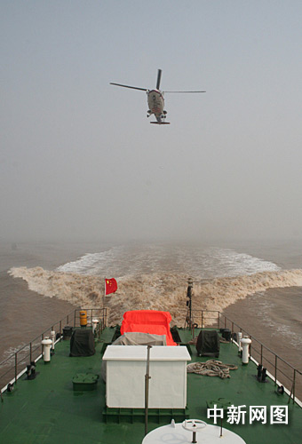 浙江海事主力艇海巡113艇與直升機在寧波核心港區(qū)?諈f(xié)作,進行海上巡視。 黃正勝 攝