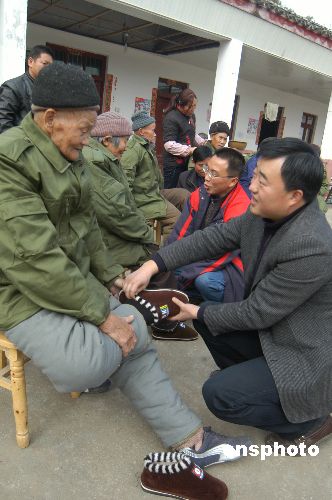 圖輯:四川災(zāi)區(qū)敬老院老人穿新衣、換新鞋