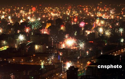 圖:北京在絢麗的煙花映襯下成為一片歡樂(lè)的海洋