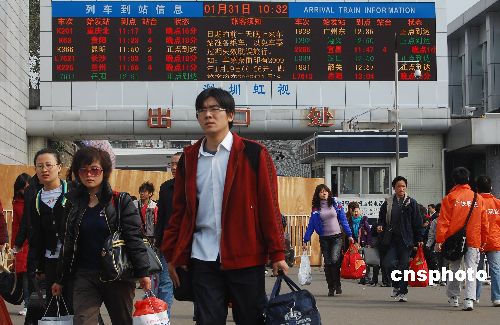 隨著春節(jié)長(zhǎng)假臨近結(jié)束,廣州火車(chē)站出站口人流開(kāi)始明顯增多,外來(lái)工和大學(xué)生畢業(yè)生紛紛提前返粵找工。中新社發(fā) 柯小軍 攝