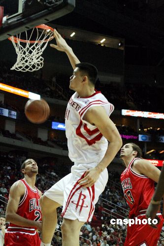 姚明貢獻(xiàn)最高分 火箭主場(chǎng)107比100擊敗公牛