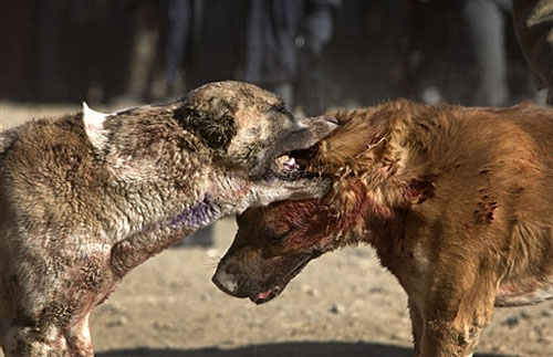 斗狗大賽:阿富汗舉行的斗狗大賽,數(shù)千名當(dāng)?shù)厝司奂诳Σ紶柦纪庥^看該項(xiàng)比賽。