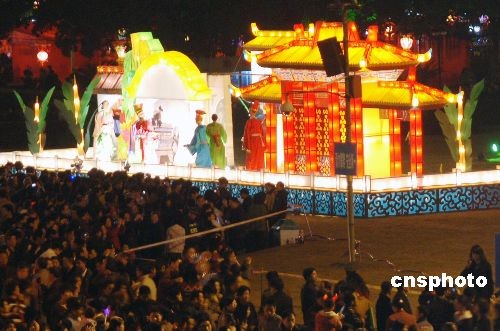 二月五日晚,福州元宵燈會在市區(qū)五一廣場、南后街同時正式亮燈,數(shù)百盞花燈呈現(xiàn)出濃濃的節(jié)日氣氛。福州五一廣場展出的一系列反映“老福州”傳統(tǒng)民俗文化內(nèi)容的燈組,吸引絡繹不絕的福州市民前來賞花燈。中新社發(fā) 劉可耕 攝