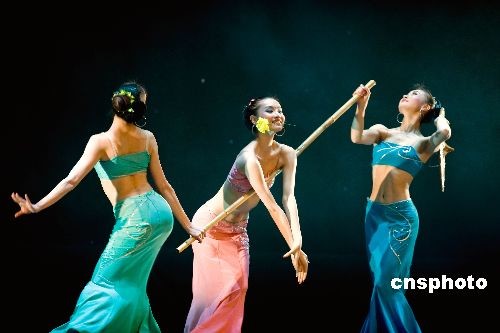 當(dāng)?shù)貢r間二月十三日晚,“四海同春”藝術(shù)團(tuán)在硅谷庫柏蒂諾市佛林特中心劇場上演《劭多麗》。這是藝術(shù)團(tuán)在美國訪問的最后一站。中新社發(fā) 陳鋼 攝