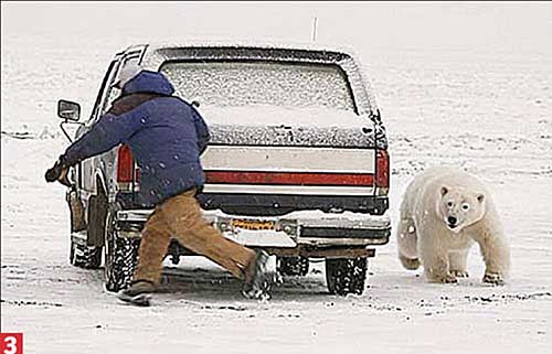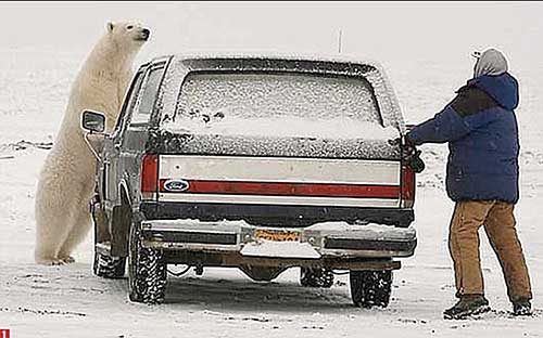 美國(guó)阿拉斯加州一名男子在大雪天駕車(chē)出行時(shí),不慎遇到一只強(qiáng)壯的北極熊。這只北極熊饑餓難耐,想拿這名男子當(dāng)“晚餐”,于是北極熊和這名男子在雪地里繞著車(chē)展開(kāi)一場(chǎng)“貓捉老鼠”的驚險(xiǎn)游戲。最終男子成功擺脫了北極熊的追逐,死里逃生。