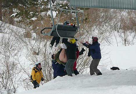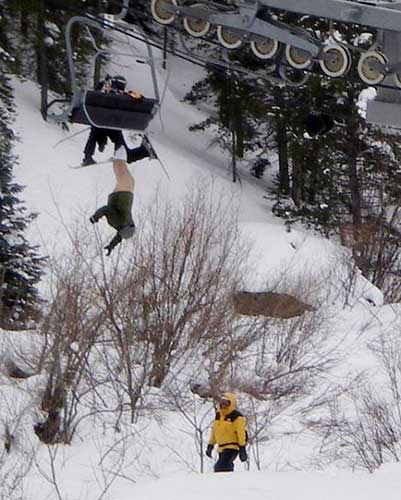 1月6日,美國(guó)科羅拉多一處滑雪場(chǎng)日前上演了一出尷尬場(chǎng)面。一名男子在上纜車時(shí),因座椅故障,整個(gè)人頭朝下翻轉(zhuǎn)了下來,所幸他的雪橇將他卡在纜車上,沒有掉下來。但是令人尷尬的是,他的褲子被扯下來,整個(gè)下半身暴露在冰雪寒風(fēng)中,直到15分鐘后才有工作人員將他救下來。