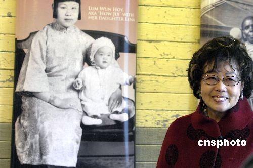 華裔移民方趙玉蓮捐出母親當年被羈留時所用的衣物以及自己和母親的照片,盼后代不忘華人移民之艱辛。中新社發(fā) 陳鋼 攝