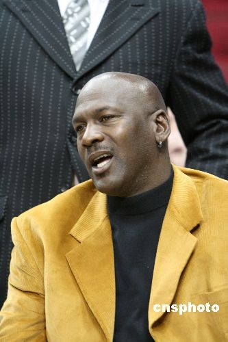圖為“飛人”喬丹現(xiàn)場觀戰(zhàn)。中新社發(fā) 李靜 攝
