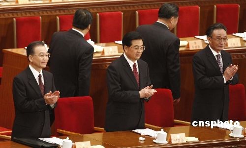 3月3日,全國政協(xié)十一屆二次會議在北京人民大會堂開幕。國家主席胡錦濤、全國人大常委會委員長吳邦國、國務(wù)院總理溫家寶出席開幕式。中新社發(fā) 盛佳鵬 攝