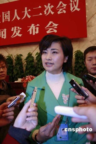 2009年3月4日,吳小莉參加十一屆全國(guó)人大二次會(huì)議新聞發(fā)布會(huì)時(shí)接受采訪,針對(duì)“香港如何應(yīng)對(duì)金融危機(jī)”這一話(huà)題回答了記者提問(wèn)。中新社發(fā) 金立冬 攝