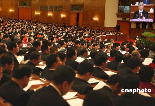 3月5日上午,十一屆全國人大二次會議在北京人民大會堂開幕,來自全國各地的人大代表認(rèn)真聽取國務(wù)院總理溫家寶作《政府工作報告》。中新社發(fā) 任晨鳴 攝