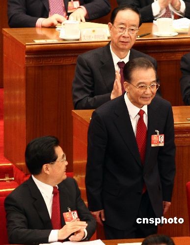 3月5日上午,十一屆全國(guó)人大二次會(huì)議在北京人民大會(huì)堂開(kāi)幕,國(guó)務(wù)院總理溫家寶在作完《政府工作報(bào)告》后,向參會(huì)代表鞠躬致謝。 中新社發(fā) 杜洋 攝