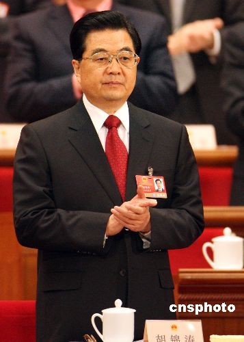 3月5日上午,十一屆全國(guó)人大二次會(huì)議在北京人民大會(huì)堂開(kāi)幕,國(guó)家主席胡錦濤出席。中新社發(fā) 任晨鳴 攝