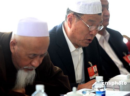 在北京參加“兩會(huì)”的民族界全國(guó)政協(xié)委員馬文丕,3月5日下午在分組討論會(huì)上建議國(guó)家在少數(shù)民族地區(qū)實(shí)行高中義務(wù)教育。中新社發(fā) 宋吉河 攝