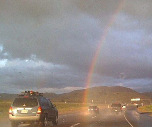 彩虹的“尾巴”。一名美國男子幸運的用手機(jī)拍下了彩虹盡頭的照片。這位男子名叫杰森·埃德卡姆普,是一名業(yè)余攝影師。09年2月7日,他駕車行駛在高速公路上的時候,幸運的捕捉到了彩虹的“尾巴”。