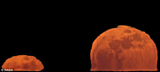 月亮的“融化”。一位名叫約翰·斯特森的美國業(yè)余攝影師拍攝到一組月亮蜃景的壯觀照片。這種罕見的天文現(xiàn)象是因不同溫度的層層空氣使月光彎曲形成的。