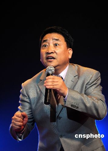 全國(guó)政協(xié)委員、著名相聲表演藝術(shù)家姜昆表演相聲。中新社發(fā) 宋健浩 攝